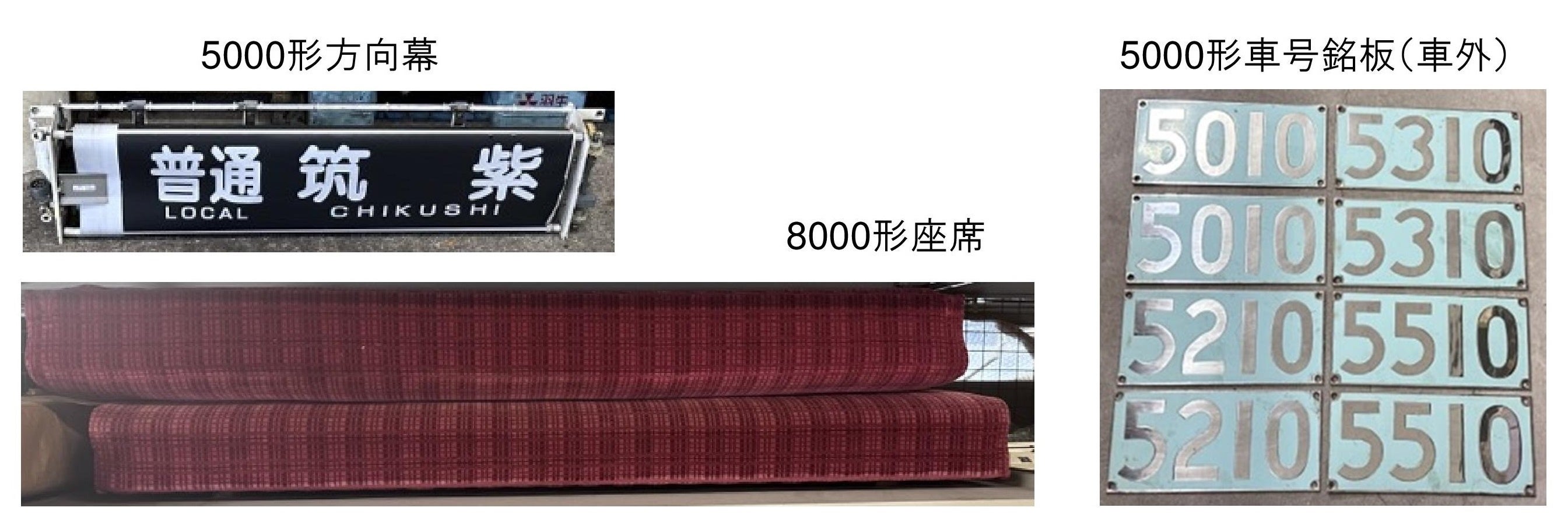 方向幕や車号銘板などの希少性の高いものから、みなさまに馴染みのある吊り革や座席などを出品いたします!