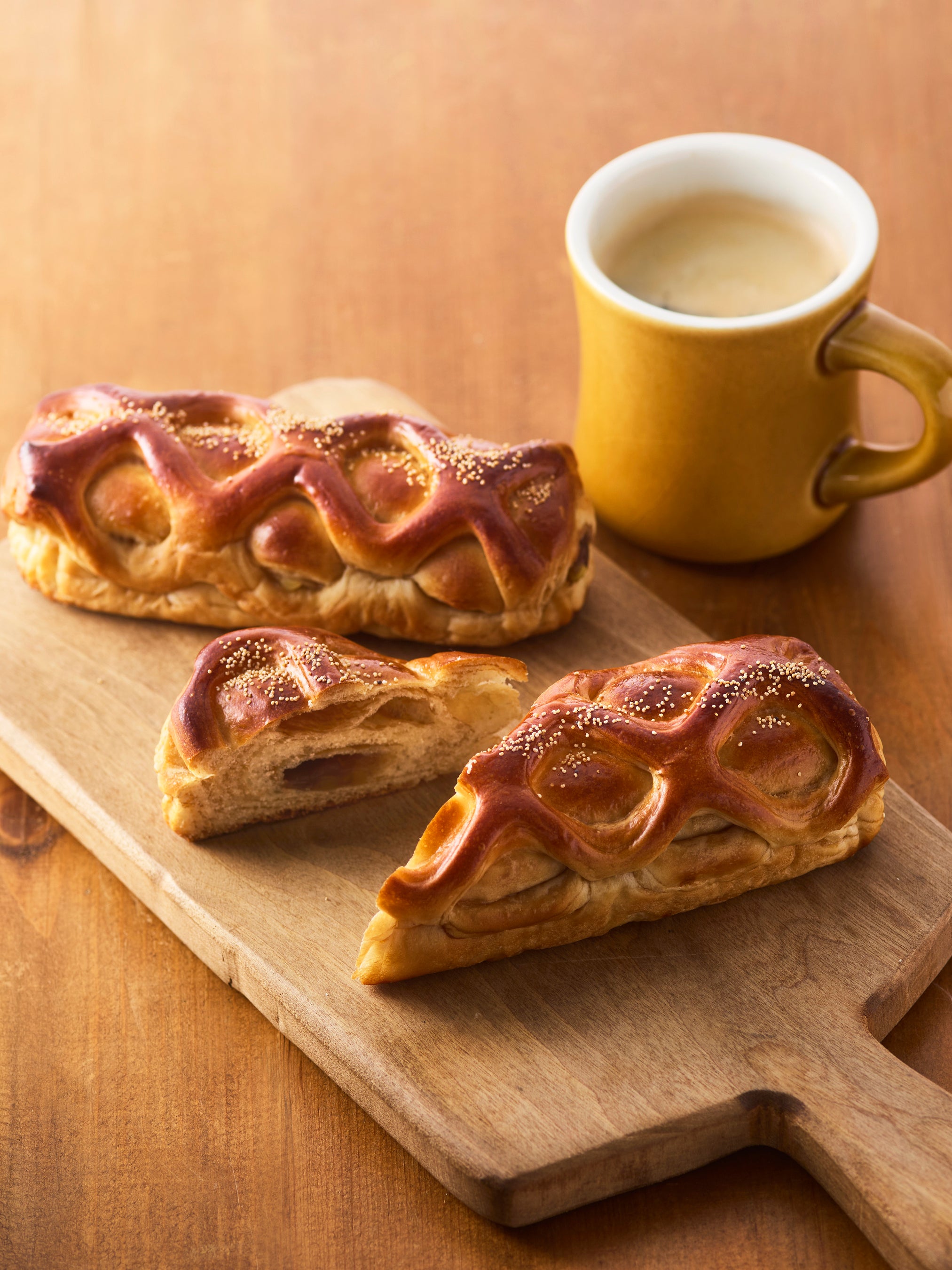 ふんわり生地に上品な甘みの栗ぺーストとダイスカットの栗を包みこみ、焼き上げました。食べ応えのあるボリューム感もポイントです。
