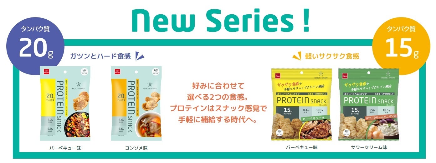 気分にあわせて食感も選べるプロテインの新たな選択肢「BODY STAR プロテインスナック」と一緒に、がんばり過ぎない“プロテイン習慣”をはじめてみませんか?