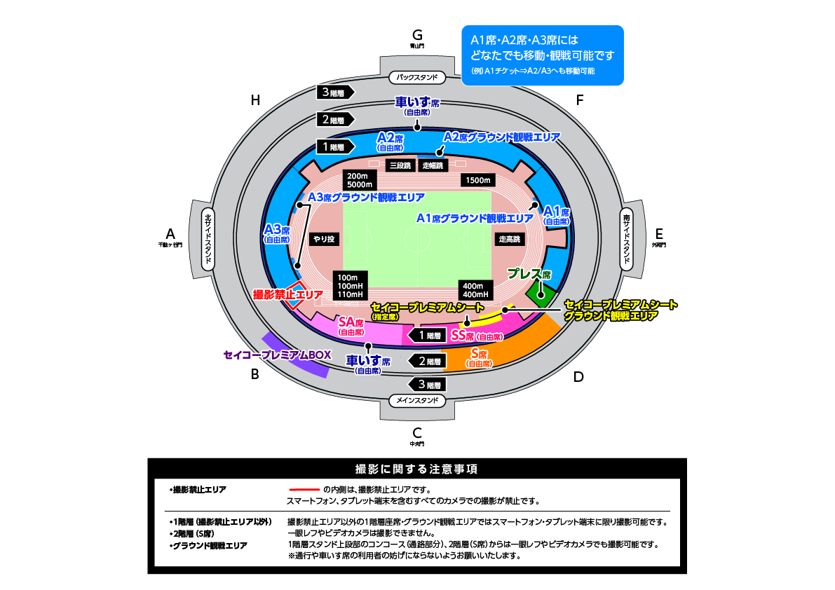※どの席種をご購入いただいてもA席(A1・A2・A3)にも移動可能となります。