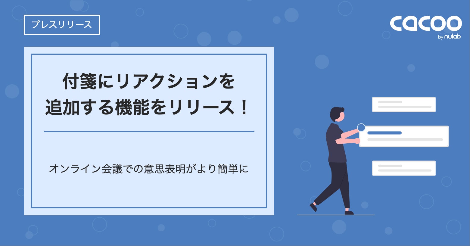 株式会社ヌーラボ(本社:福岡県福岡市、以下 ヌーラボ)が提供している「Cacoo」は、「付箋にリアクションを追加する」機能をリリースしました。付箋機能に絵文字のリアクションが追加できるようになることで、チームメンバー間のコミュニケーションが活発になり、意見交換やフィードバックがさらに効率化されます。それによりオンラインでの会議やディスカッションがよりスムーズになります。