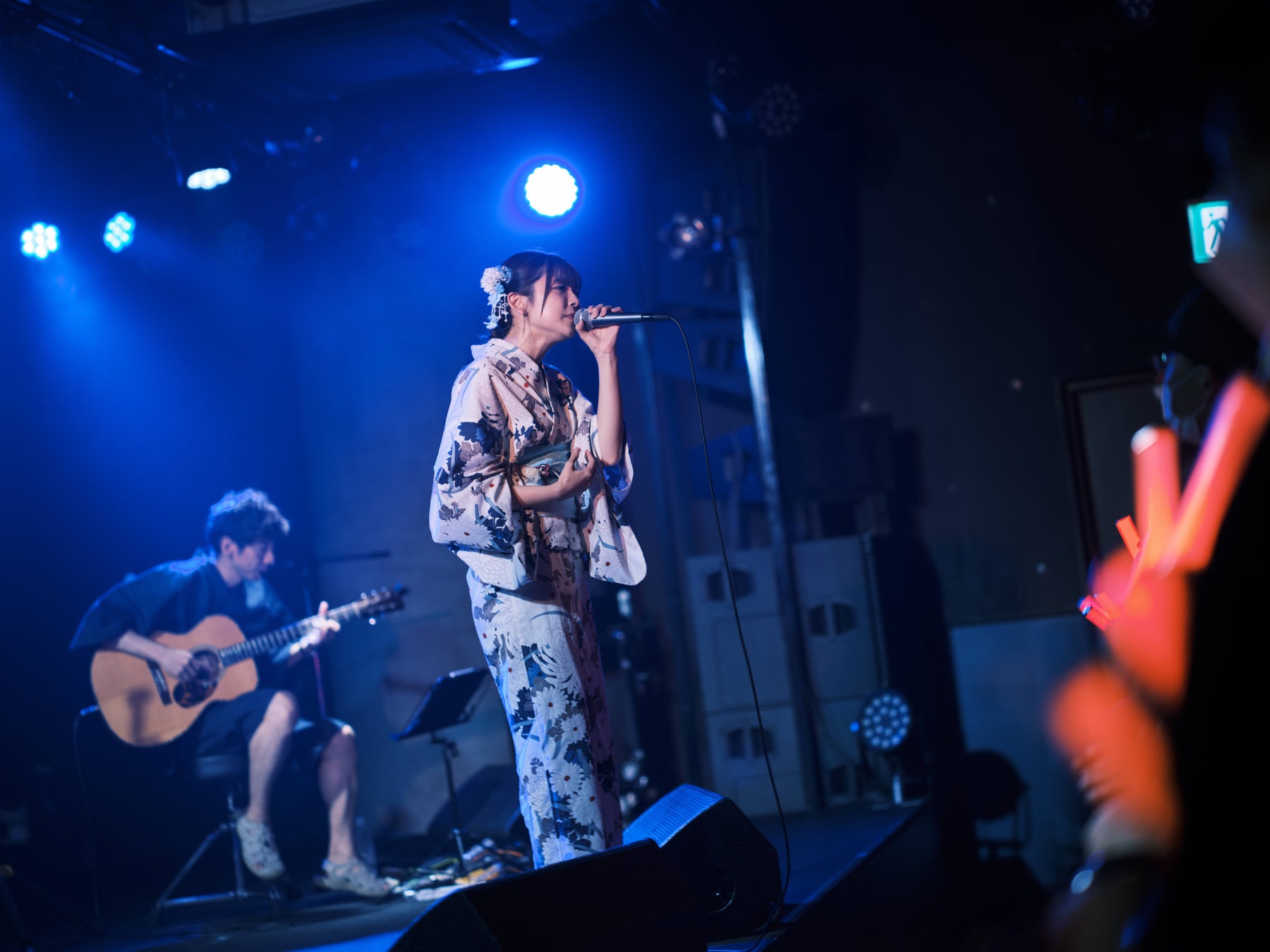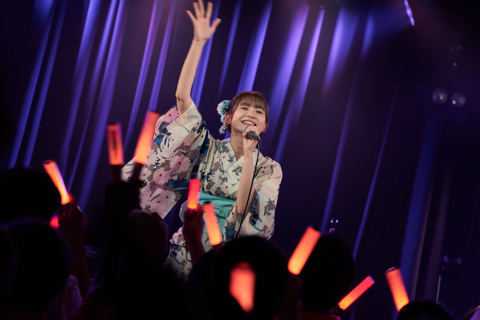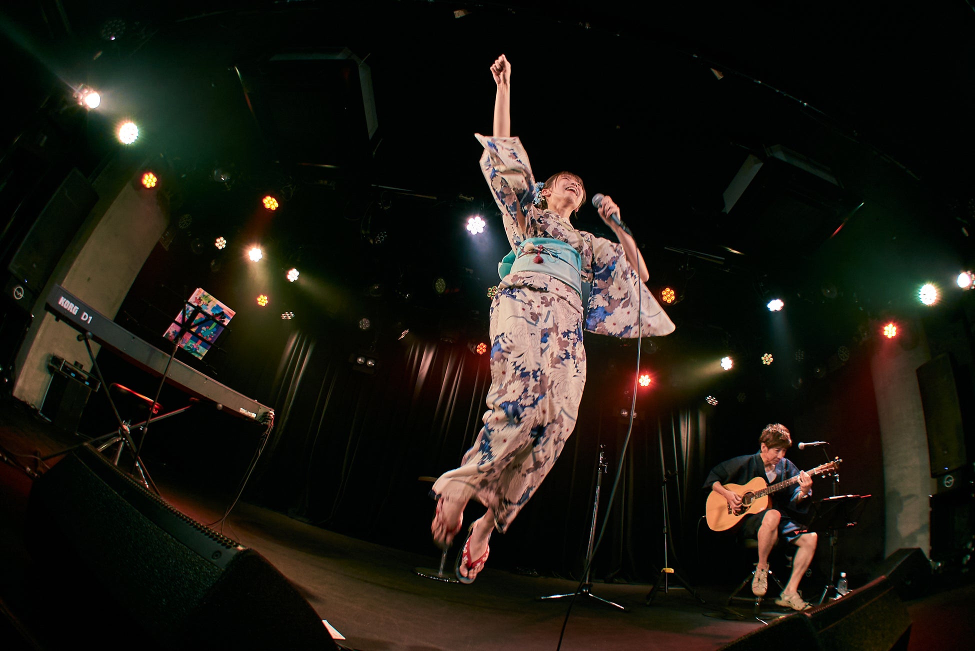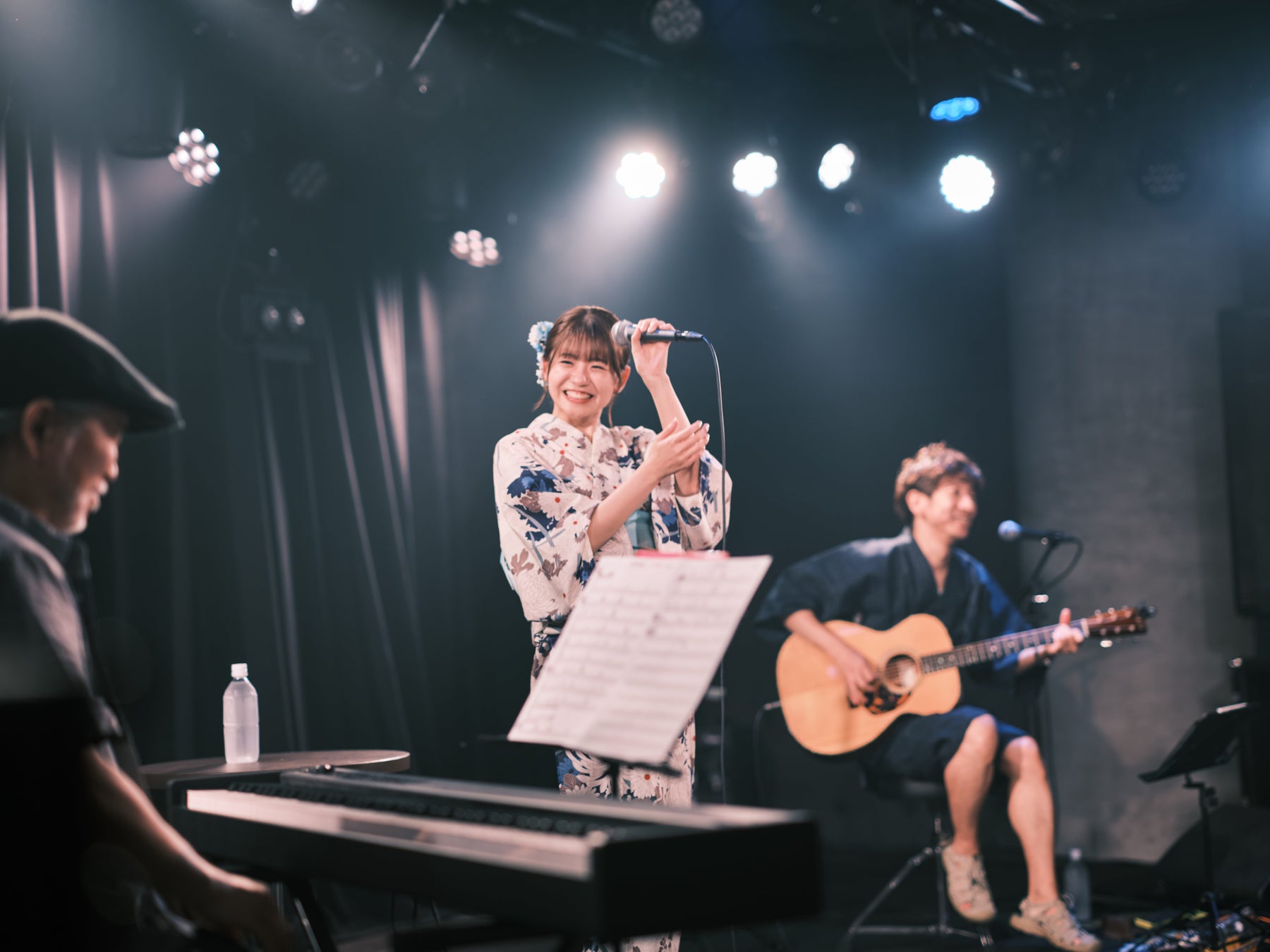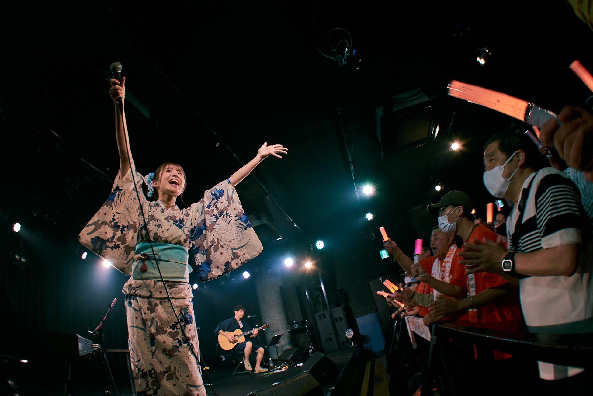 観客からの期待感で溢れる中、シングル「ございます。」のジャケ写と同じ浴衣衣装で登場し、フロアは演奏前から大盛り上がり。「八月の幽霊」で幕を開けたステージは、「Daisy×Daisy」「排他的感情論」「Serenade」とたけやま3.5時代の名曲をアコースティックアレンジした曲を演奏し、ソロシンガーとして成長した姿をファンの前で披露し、さらなる魅力が存分に伝わるパフォーマンスで観客を魅了しました。