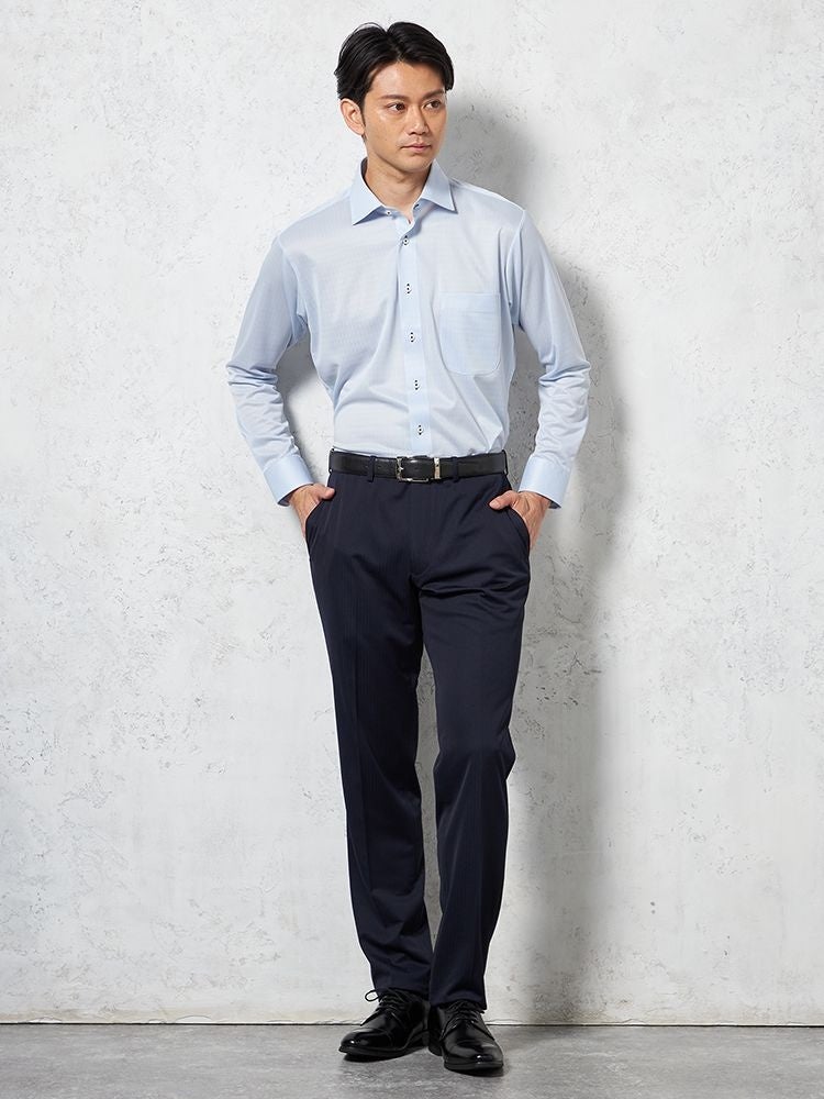 ① ウォッシャブル&ノーアイロン仕様でラクラクケアのスラックス