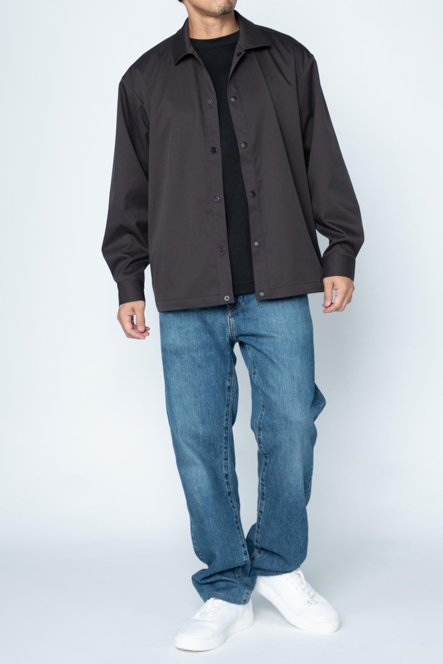 特徴:リラックス感のあるボックスシルエットが特徴のシャツブルゾン。速乾・撥水・ストレッチ・防シワ・耐久性などの機能を備える自社オリジナル素材「ultimex」を使用。シンプルなデザインながら、体のラインを拾いにくく、ビジネスからキレイめカジュアルまで様々なコーディネートをお楽しみいただけます。両サイドにポケット付きで、スマートフォンや小物も収納可能。着脱がしやすいドットボタンを採用。シワになりにくく、アイロン要らずで美しいシルエットをキープします。