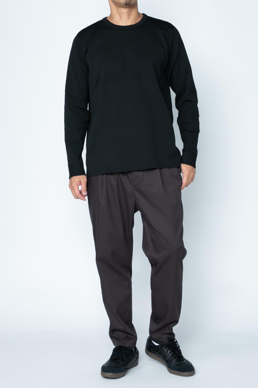 特徴:ゆったりとしたテーパードシルエットが特徴のワンタックイージーパンツ。ワンタック入りのデザインで、リラックス感がありつつも、上品な印象を演出します。ウエスト部分は、内側・外側どちらでも結べるドローコードと柔らかなウエストゴム仕様で、快適な穿き心地にこだわりました。丈感はやや短めで足元すっきり。ビジネスシーンからキレイめなコーディネートまで、幅広く愛用できる一枚です。
