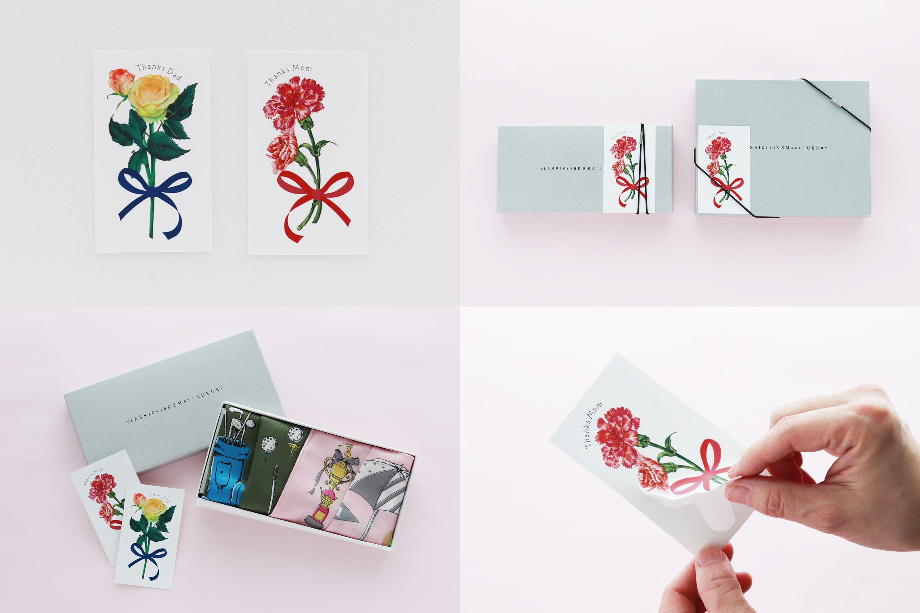 2026年4月15日(水)より、期間限定で母の日ギフトにはカーネーションを、父の日ギフトにはバラをモチーフにした、オリジナルステッカーをご用意いたします。母の日、父の日を合わせて、ご両親へのギフトとしてお選びいただくのもおすすめです。