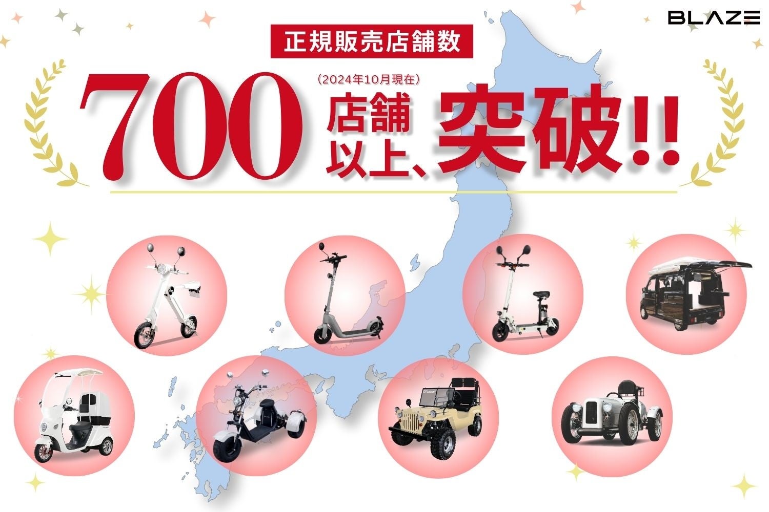 EVモビリティメーカー(株)ブレイズの正規販売店が700店舗を突破しました!
