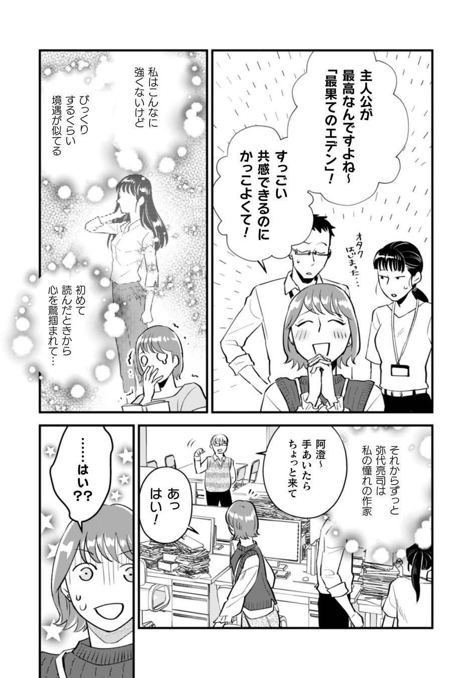 そんなある日、憧れの新人作家・弥代亮司の担当を任せてもらえることになり喜び勇んで彼の元へ行くと