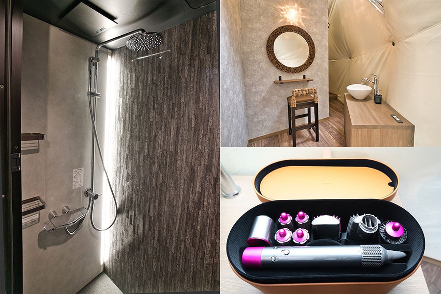 また、ドーム型テントには珍しく室内に専用のトイレ・シャワーを完備。完全プライベートな快適空間で、ホテルライクなステイを楽しめます。また、チェックインは非接触型を導入しているため、他のゲストやスタッフとの接触も最小限。より静かで上質な時間をお過ごしいただけます。
