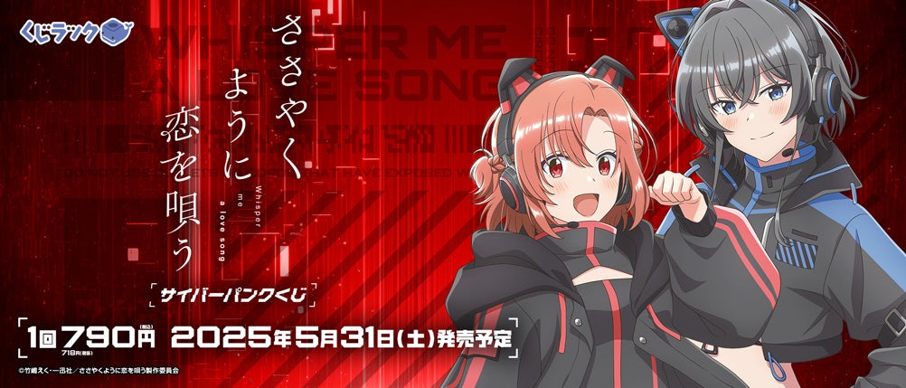 カルチュア・エンタテインメント株式会社は、TVアニメ『ささやくように恋を唄う』とコラボレーションした、はずれなしのリアルくじ「くじラック」を、2025年5月31日(土)より発売いたします。賞品はサイバーパンク風の衣装をまとった、木野ひまり、朝凪依の描き下ろしイラストを使用したアイテムラインナップとなっており、さらに最後のくじ購入者にはラスト賞として、A4サイズのクリアボードをご用意しております。
