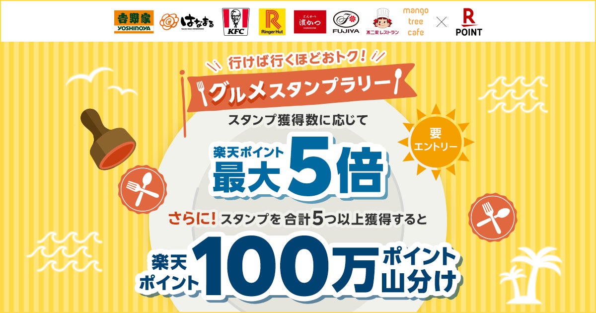 「楽天ポイントカード」、「楽天ポイント」が最大5倍になるグルメスタンプラリー第2弾を実施