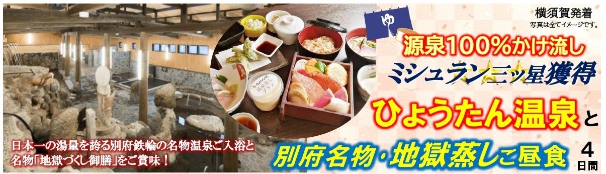 源泉100%かけ流し ミシュラン三ツ星獲得 ひょうたん温泉と別府名物・地獄蒸しご昼食4日間