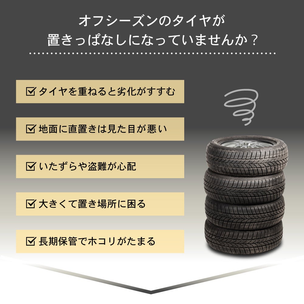 また、床に直置きするよりも通気性が確保でき、タイヤの湿気や劣化のリスクを軽減。実用性を最優先した“実用本位”の設計が特長です。