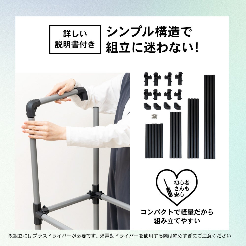 必要な工具はプラスドライバー1本。付属のイラスト付き説明書を見ながら、30分ほどで組み立てられます。差し込み式では得られない「しっかり感」が得られる構造で、長く安心して使えます。
