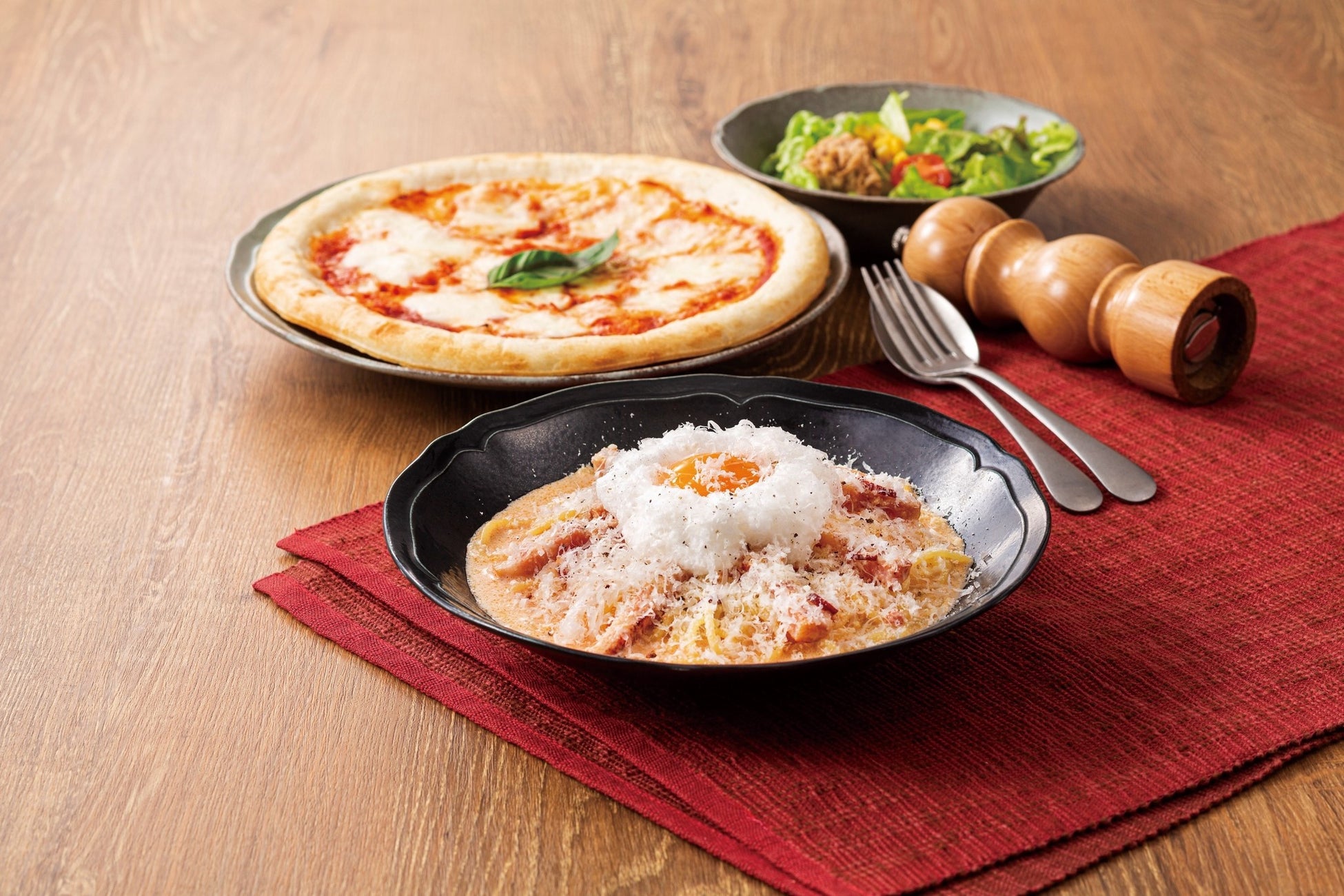 かわいい&おいしいカルボナーラをはじめとした生パスタやピザが楽しめます。