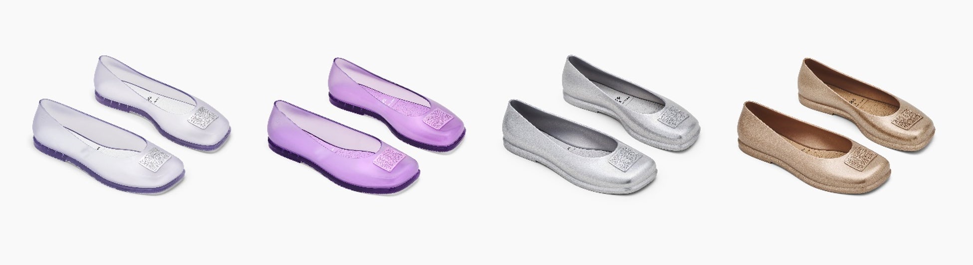 このエクスクルーシブなコレクションは、マーク ジェイコブスのプレタポルテラインからインスピレーションを受けたファッション性の高い形やモノグラムプリント、メタリックな質感が、メリッサのDNAであるPVC素材、トランスパレンシー、エコフレンドリーな精神と融合しています。