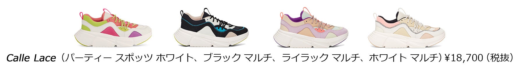 また、同日3月2日は、レディースのスニーカーコレクションから、Calle Lace(カレ レース)とLA Cloud Lace(LA クラウド レース)の新色も多数発売開始。Calle Lace(カレ レース)スニーカーは、基本のブラックとホワイトカラーなどに加えて、マルチカラーのブロッキングデザインで個性豊かなスタイルが登場。ネオプレンとヌバックのアッパーでフィット感が良く、クッション性の高いTreadlite by UGG™(トレードライト バイ アグ)のアウトソールに、つま先と踵の部分にはラバーがついて、履き心地も抜群。