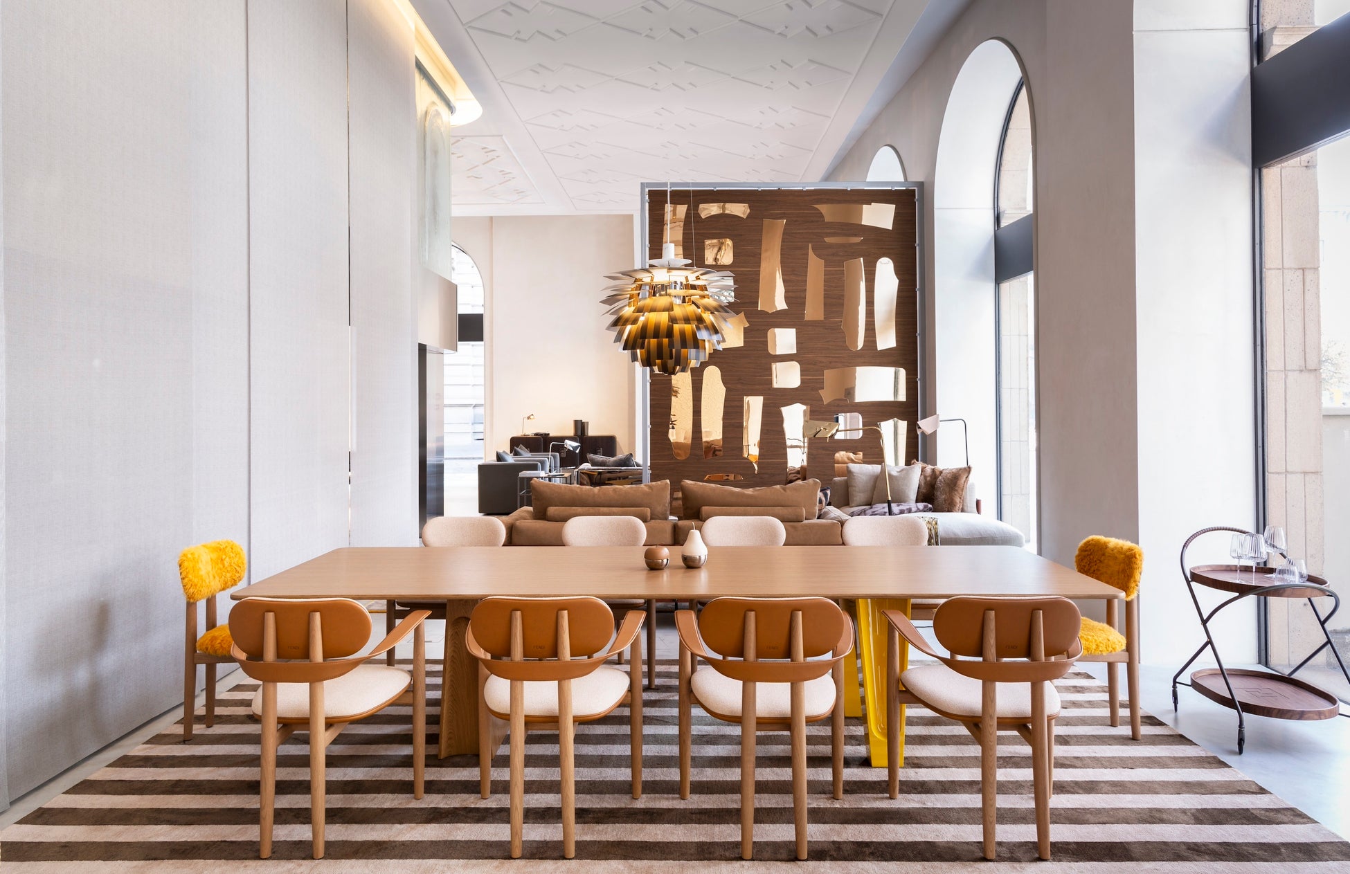 インテリアは独特な二面性を持っています。マンゾーニ(Manzoni)通りに面する側は、金属素材、官能性、そして豪華さが支配しています。ヴェルディ(Verdi)通りに面する側は、自然の質感、より有機的な形状、色調や陰影の相互作用、そして洗練された控えめなエレガンスが特徴です。その結果、コントラストのバランスが生まれています。一方では、グレーとブラックの豪華なパレット、正確で洗練されたボリューム感、他方では、明るい色調の木材、竹、そして柔らかなラインが見られます。