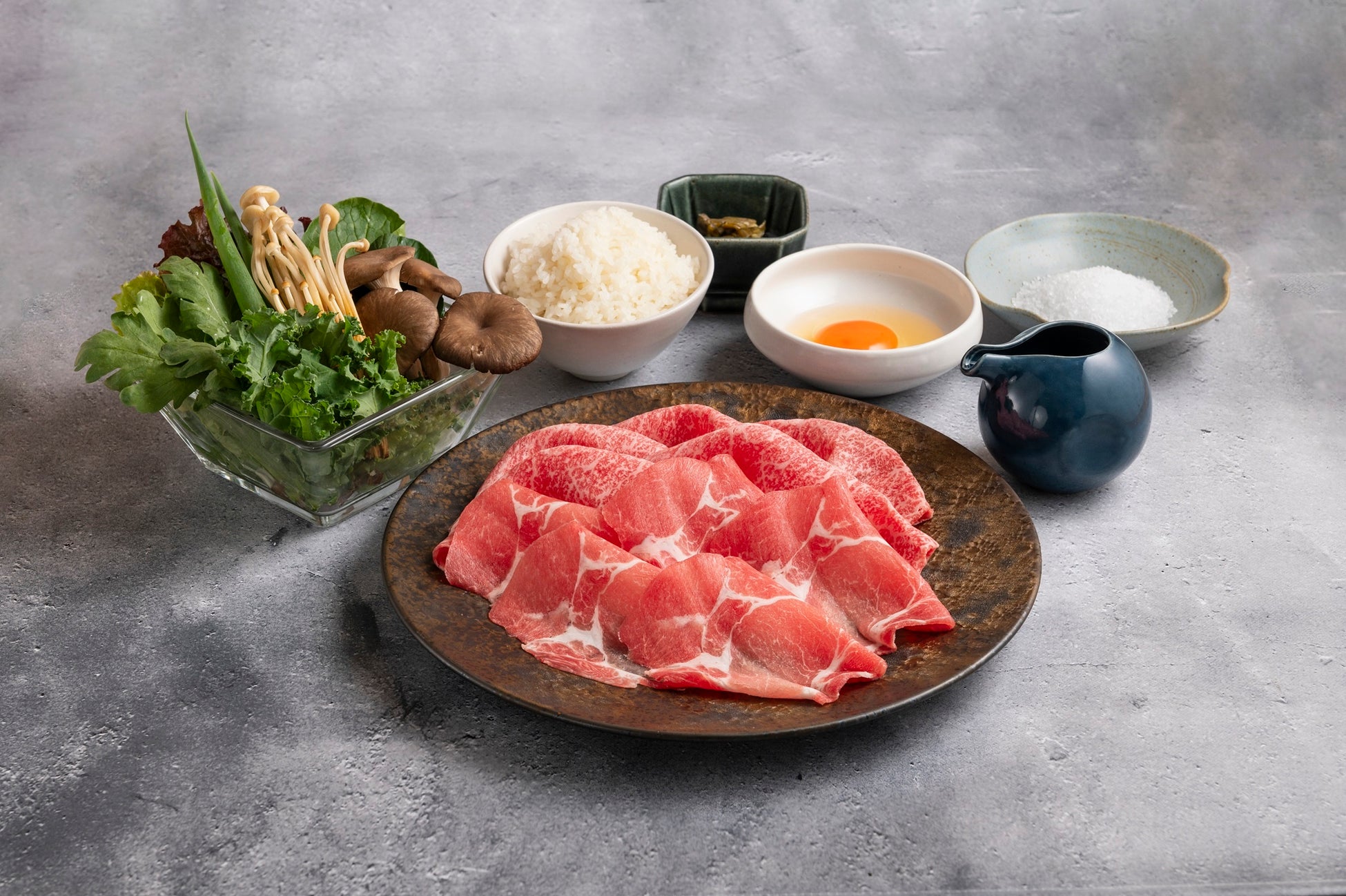 国産和牛やブランド牛、銘柄豚など厳選した肉と季節ごとに各地から届く旬の野菜を、関西地方伝統のザラメで焼くすき焼や、しゃぶしゃぶでお楽しみください。