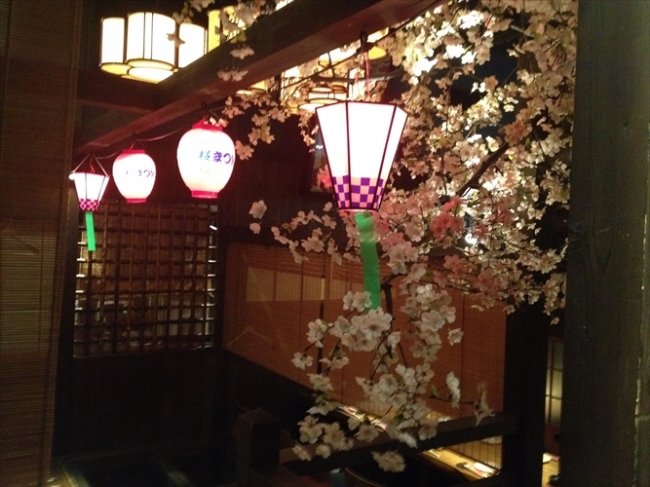 京都の町を再現した店内にはこの時期限で桜の装飾が随所に施され、春の訪れを感じて頂けます!