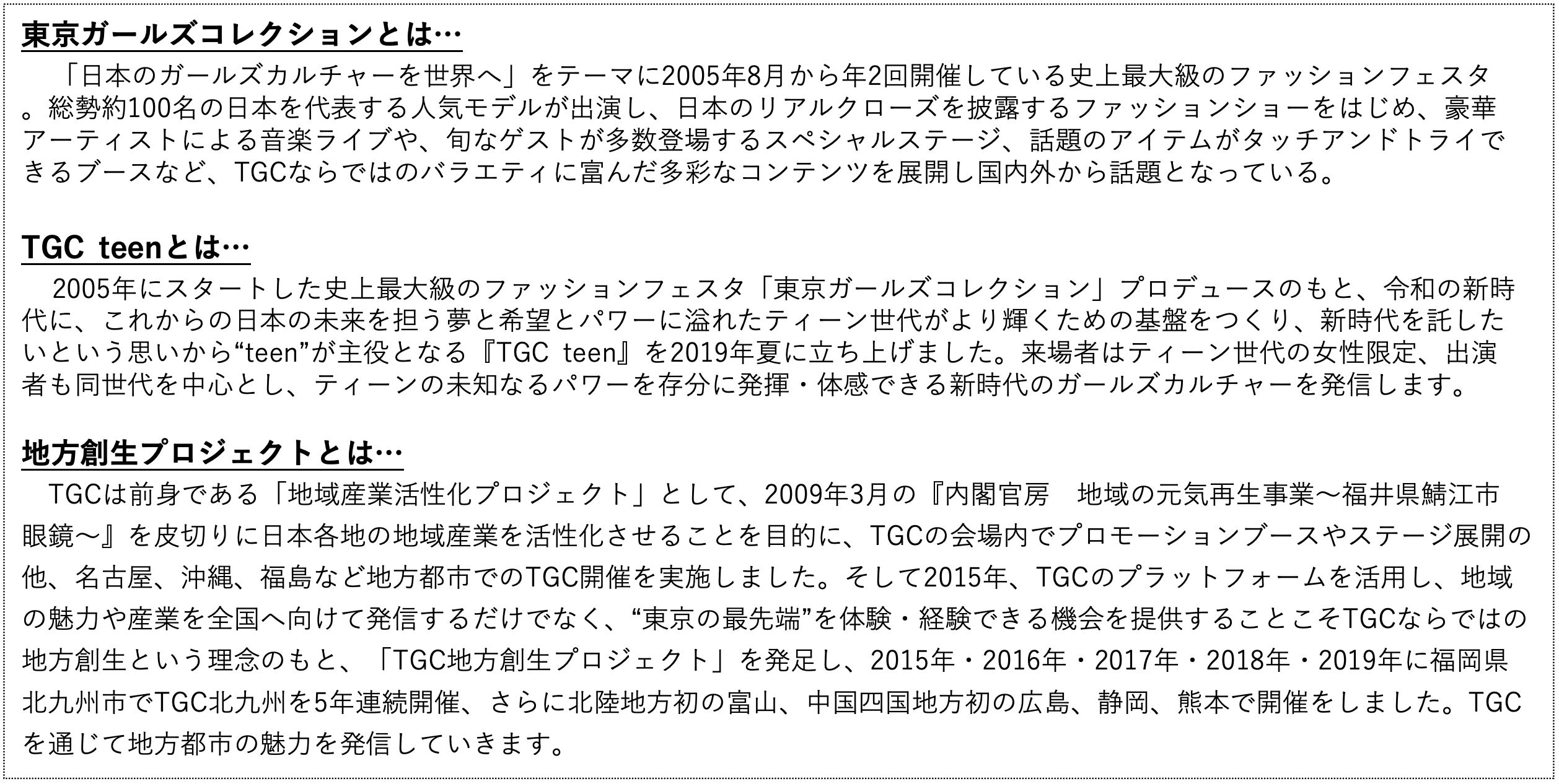 | 【 TGC teen ICHINOSEKI 2023 開催概要 】 |