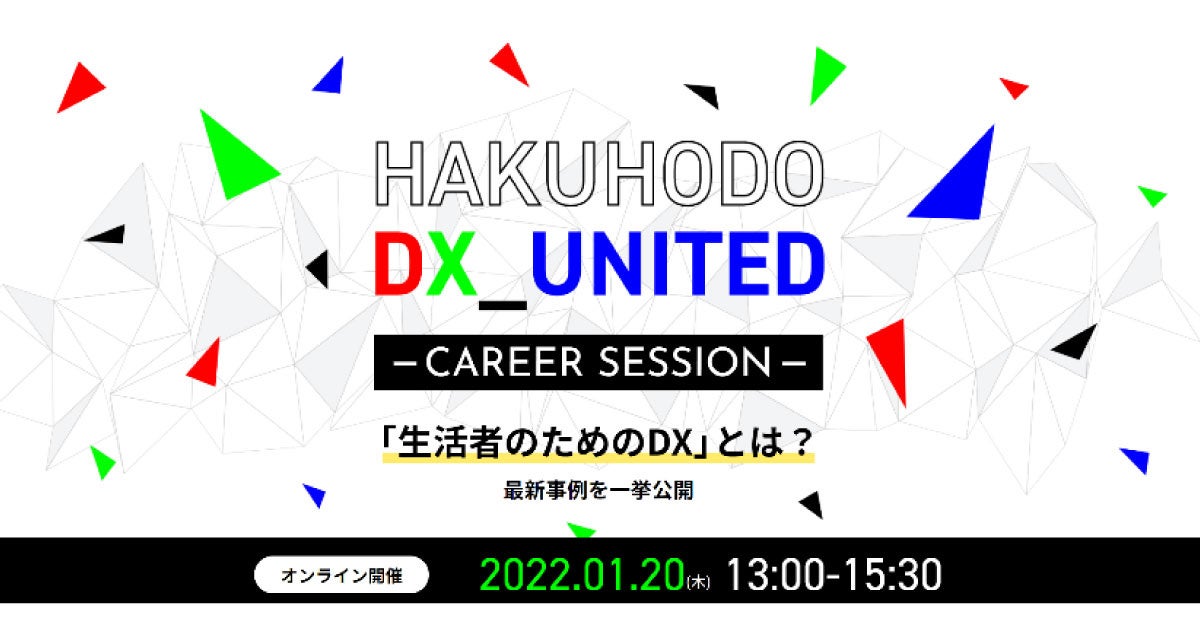 株式会社博報堂(東京都港区、代表取締役社長:水島正幸、以下博報堂)と株式会社博報堂DYメディアパートナーズ(本社:東京都港区、代表取締役社長:矢嶋弘毅、以下博報堂DYメディアパートナーズ)は合同で、現在採用の強化を図る博報堂DYグループ横断型の戦略組織「HAKUHODO DX_UNITED」でのキャリアに興味をお持ちの方々に向けた説明会を2022年1月20日(木)にオンラインにて開催いたします。