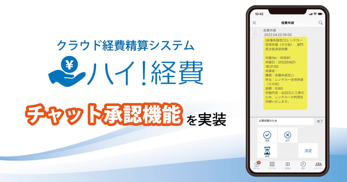 クラウド経費精算システム「ハイ!経費」申請された経費をチャットで通知し、チャット内で内容確認・承認ができるチャット承認機能の実装~承認業務の効率化が可能~