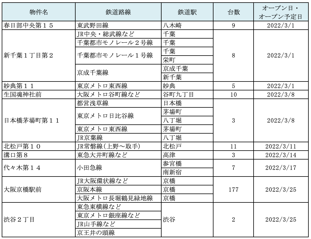パーク24株式会社(本社:東京都品川区、社長:西川光一)は、温室効果ガスの排出量削減に繋がる移動法「パーク&ライド」および「レール&カーシェア」が可能なタイムズパーキングおよびタイムズカーステーションの2022年3月におけるオープン予定をお知らせいたします。