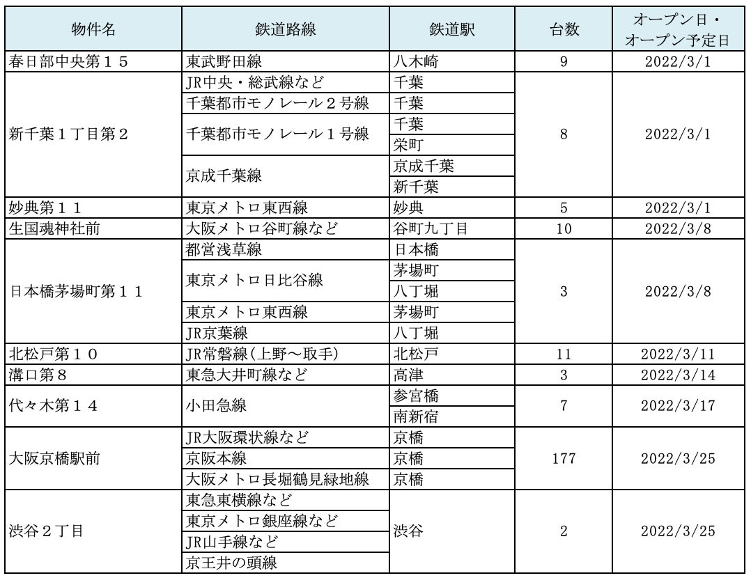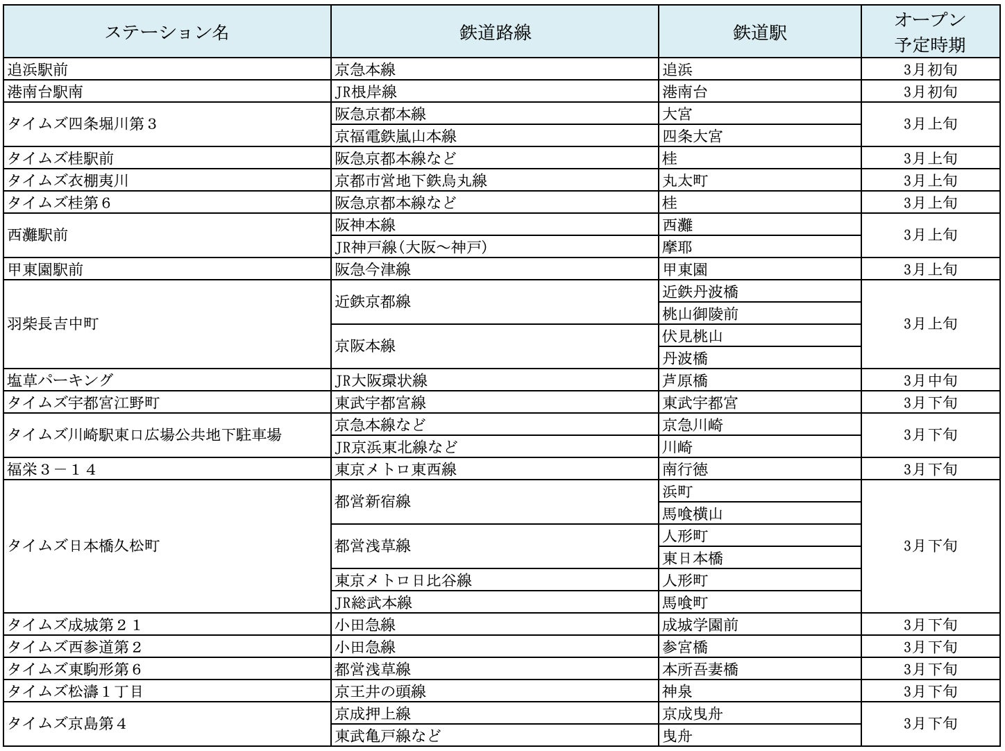 3月にオープンおよびオープン予定の「パーク&ライド」が可能な駐車場は10件、「レール&カーシェア」が可能なステーションは68件です。