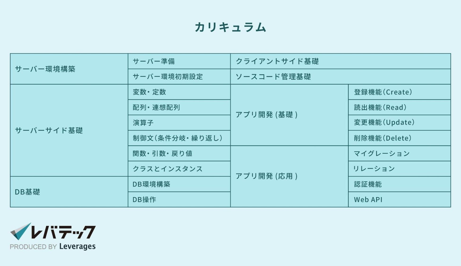 対象となる10校の大学に在籍する大学生・大学院生は、レバテックカレッジが提供する学生向けプログラミングスクールのカリキュラムを1ヶ月間、無償で受講いただけます。カリキュラムでは、Webサービスやアプリケーションを作成する上で欠かせないプログラミングスキルを習得することが可能です。