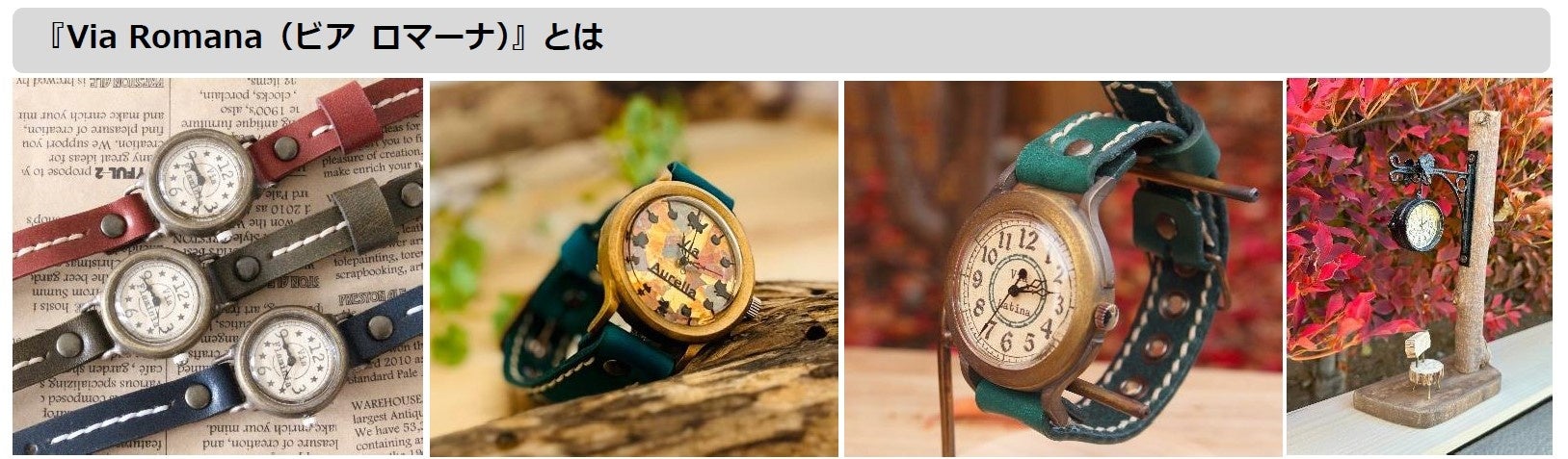 『Via Romana』は、作家高橋 詠(たかはし えい)による、日常使いに最適な、毎日がわくわくするようなアクセサリー感覚で使えるアナログの手作り時計ブランドです。アンティークデザインでありながら実用的な手作り腕時計、置時計を一つ一つ丁寧に製作しています。
