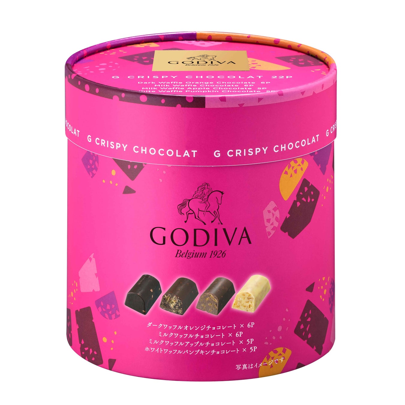 ゴディバのシェフショコラティエ ヤニック・シュヴォロー監修のワッフルのサクサクとした食感が楽しいひと口タイプのチョコレート、「G クリスピーショコラ」からパーティーボックスを発売します。「ダークワッフルオレンジチョコレート」、「ミルクワッフルチョコレート」に加え、新フレーバーのすっきりとしたりんごの味わいがアクセントの「ミルクワッフルアップルチョコレート」とかぼちゃの深い味わいのある「ホワイトワッフルパンプキンチョコレート」をアソートしました。パーティーシーズンにぴったりのアソートボックスです。