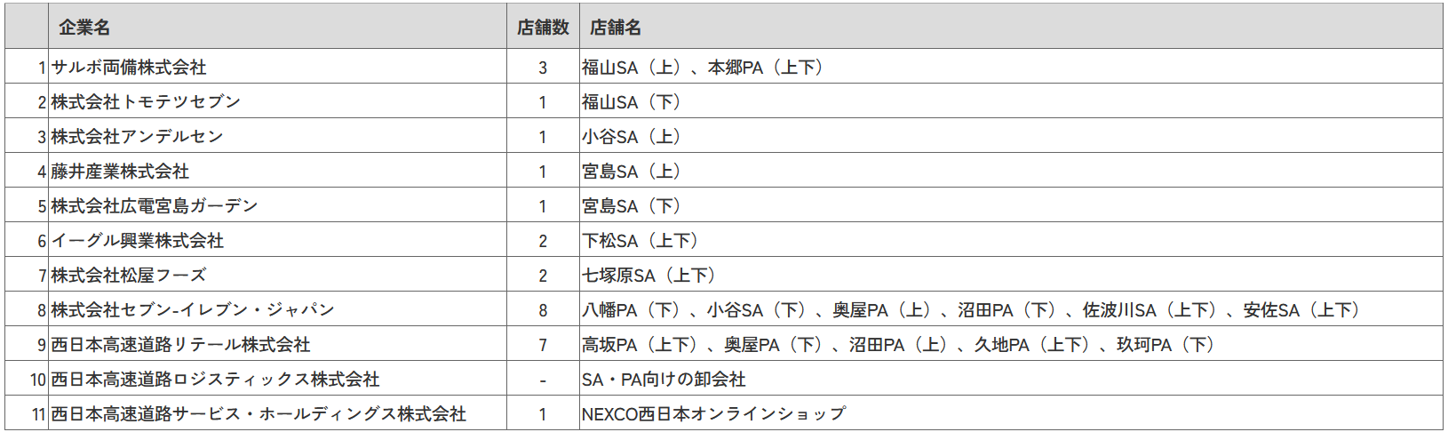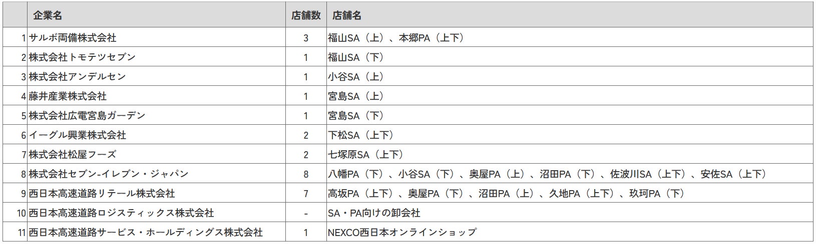 買い手:SA・PAの商業施設のテナント事業者等 11社
