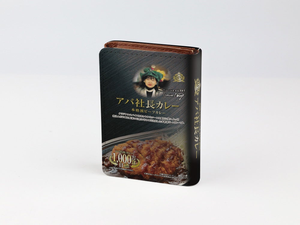 『アパ社長カレー夏得キャンペーン』の為に、今回より製作したアパ社長カレーオリジナルグッズの「アパ社長カレー名刺入れ」は合計52様にプレゼント致します。