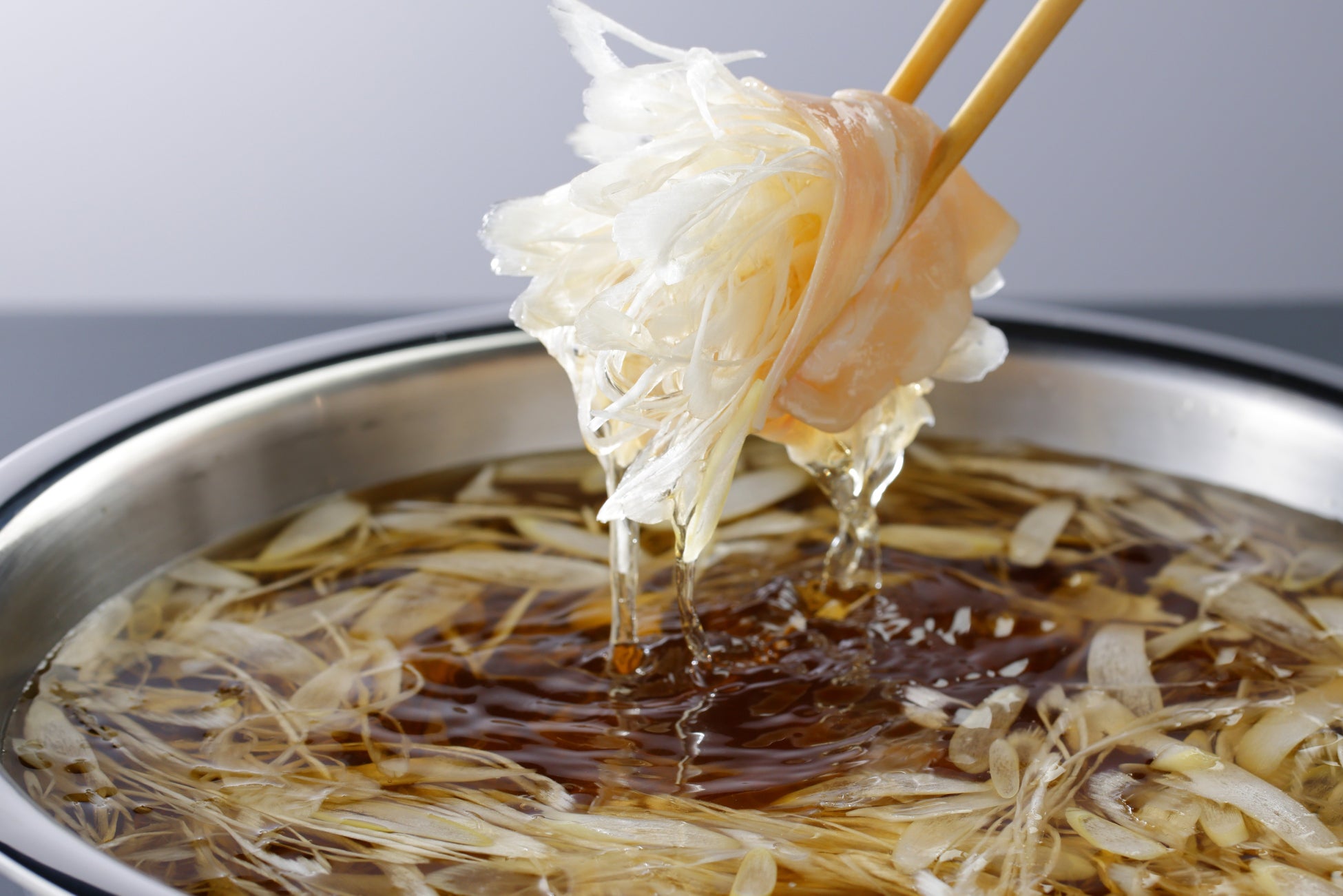 職人が手で熱を測り火力を調整し、3カ月かけて鰹の旨みを凝縮した「手火山式本枯節」を使用することで、野菜本来の旨みと鰹の風味を同時に味わえるおだしで、至福のしゃぶしゃぶをご堪能いただけます。
