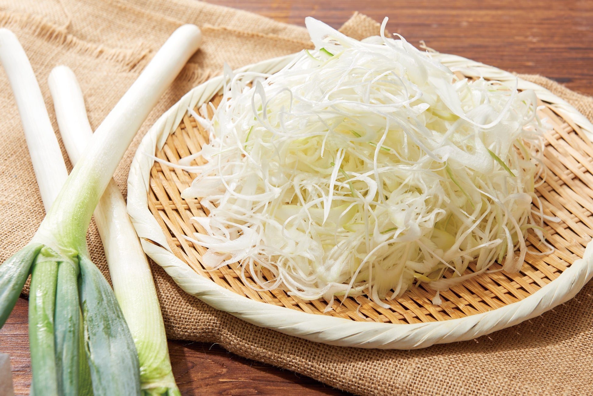 1本1本、特別な刃で斜め切りをしています。洒落ねぎという名前は、「鍋に浮かべたときに『しゃらしゃ』と音がするくらい薄い切り方をしている」ことに由来します。鍋に入れるとだしに良く絡み、お肉で巻いて食べると、だしも一緒に口に運んでくれます。