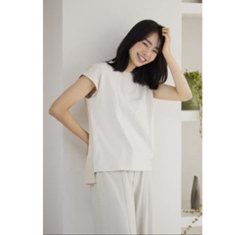 一枚でサラッと着られる、フレンチスリーブのシンプルなデザイン。