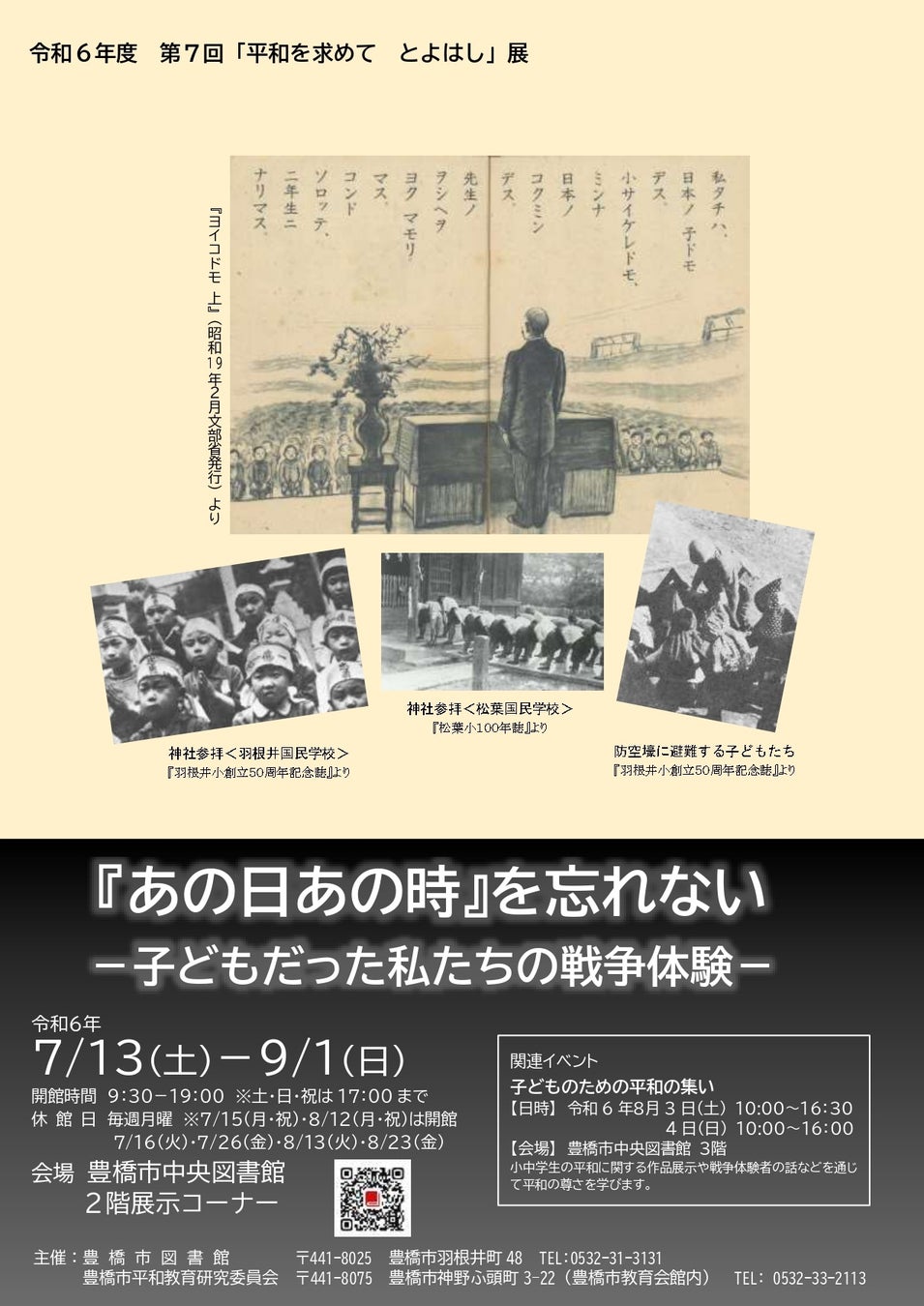 「『あの日あの時』を忘れない」 子どもたちの戦争体験 「第7回平和を求めて とよはし」展 開催中