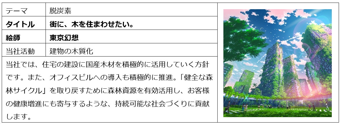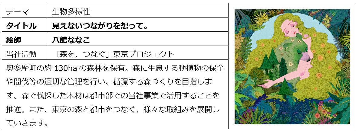 現在SNSで約19万人のフォロワーを持ち、2022年には「作品集Ⅱ」も発表し話題となった「東京幻想」氏をはじめとして、若年層を中心に人気を集める絵師9名が、当社のサステナビリティに関する取組みをイラスト化。絵師それぞれの画風が駆使されたイラストは、サステナビリティを楽しみながら、その重要性を知ることができるコンテンツとなっています。