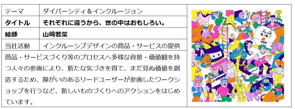 また、メインビジュアルにおいては、9名の絵師によってそれぞれ描かれた18の面をもつ地球の絵を採用。当社の2050年のありたい姿であるサステナビリティポリシー「Earth Pride-地球を、つなぐ-」をイメージしています。