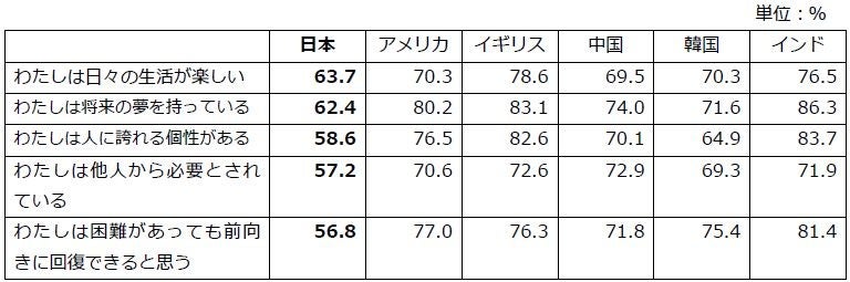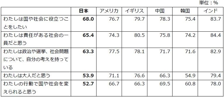 調査対象:日本・アメリカ・イギリス・中国・韓国・インドの17歳~19歳男女、各国1,000名