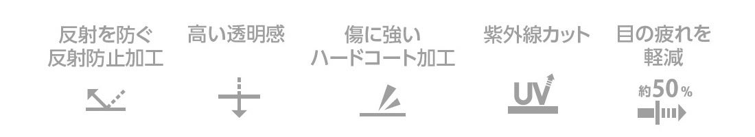性能:可視光線透過率/約75%、ブルーライトカット率/約50%、紫外線カット率/99.9%、反射率/5.5%