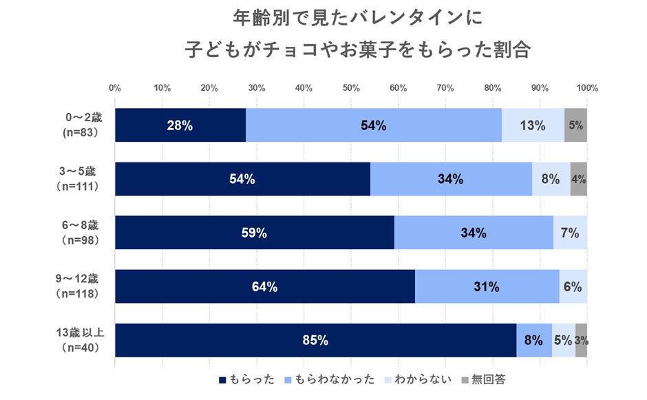 では、昨年のバレンタインでお子さんはチョコやお菓子をもらったのでしょうか。