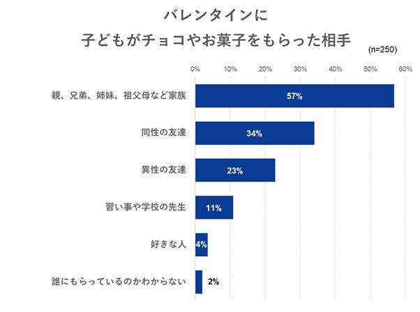 では、お子さんは昨年のバレンタインに、誰にチョコやお菓子をあげたのでしょうか。