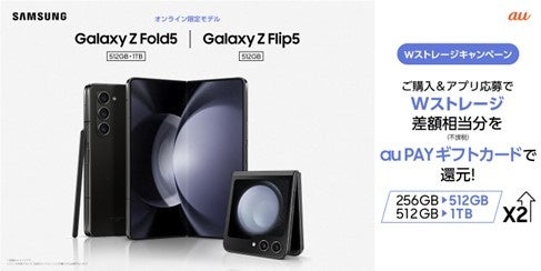 au 「Galaxy Z Flip5」「Galaxy Z Fold5」Wストレージキャンペーン 再び開催決定!~対象購入期間:2023年11月1日(水)~2023年11月30日(木)~