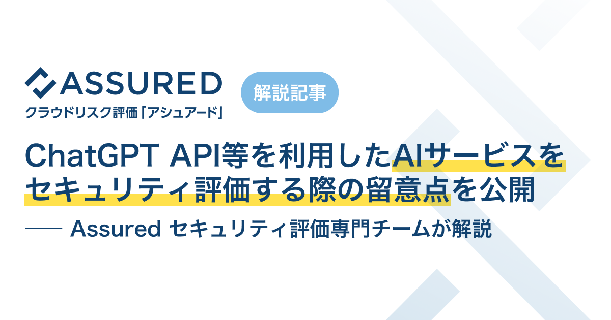 クラウドリスク評価「Assured」、ChatGPT API等を利用したAIサービスをセキュリティ評価する際の留意点を公開