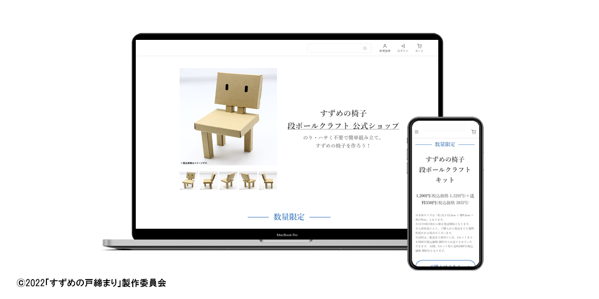 BEENOS株式会社(東証プライム:3328)の連結子会社で、エンターテインメント産業のデジタルトランスフォーメーション(DX)を支援するBEENOS Entertainment株式会社(本社:東京都渋谷区、代表取締役社長:内海 拓郎)は、新海誠監督作品 映画『すずめの戸締まり』の作中に登場する椅子を段ボールクラフトで再現できる「すずめの椅子 段ボールクラフト キット」を販売するECショップ『【すずめの椅子 段ボールクラフト】公式ショップ』( https://suzume-isu-craft.com/ )の制作・運営のサポートを開始しました。