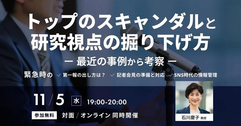 「トップのスキャンダルと研究視点の掘り下げ方~最近の事例から考察」セミナーを11月5日(水)開催