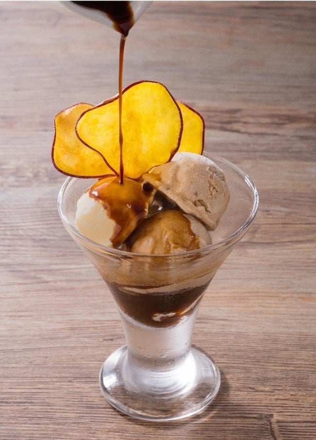 渋皮栗アイスとバニラアイスに別添のエスプレッソをかけてお召し上がりください。食後のデザートにおすすめです。