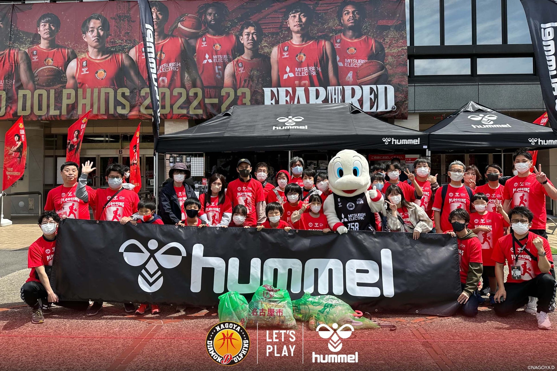 ヒュンメルは、今シーズンから名古屋ダイヤモンドドルフィンズ(名古屋D)のトップパートナーとなり、名古屋Dが、地域への感謝の気持ちとして実施する社会貢献プロジェクト『ドルフィンズスマイル』の連携協定にもサイン。ドルフィンズがチャンピオンシップ出場を決めたリーグ終盤の4月15-16日、広島ドラゴンフライズ戦で初めてマッチデーを行った。